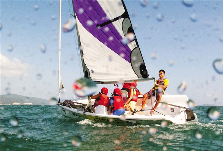 当天,万航帆艇亚龙湾航海基地启航仪式在三亚亚龙湾举行。基地可以为帆船爱好者提供2到15天的帆船技能及航海文化培训,向大众传播帆船文化,体验帆船运动的乐趣。本报记者 武威 摄