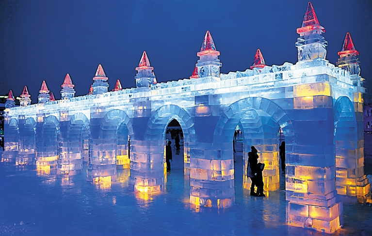 哈尔滨太阳岛雪博会“大秀”迷人夜色