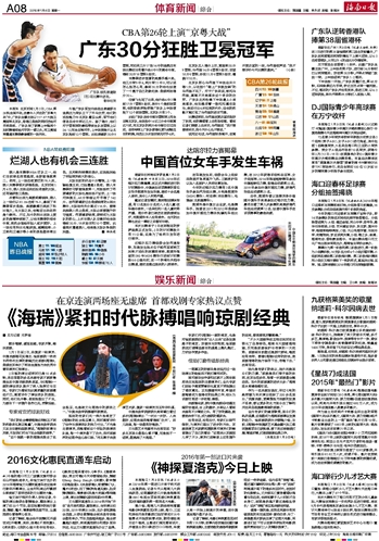 海南日报 体育新闻综合 008 2016-01-041 2016年01月04日 星期一