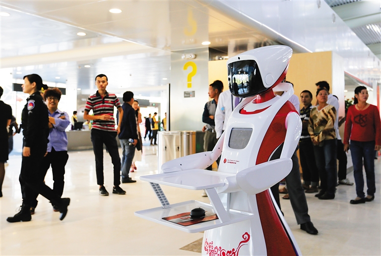 “洗手间在什么地方?”“沿着这个方向一直往前走,右转就是。”智能机器人礼貌客气的表达让旅客忍俊不禁。两机场负责人均表示,机器人“上岗”不仅可减少重复性工作的人力运营成本,而且可为旅客带来更为新奇的现场体验。