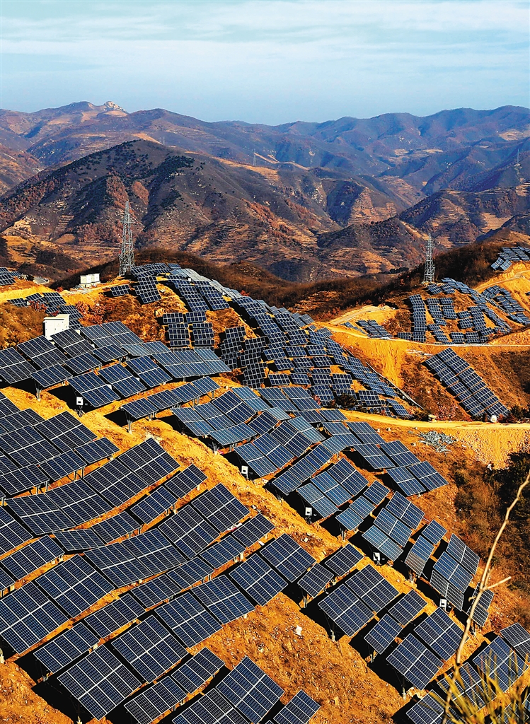 图为河北省青龙满族自治县隔河头光伏发电场。 据国家能源局统计数据显示,我国着力加快清洁能源发展,使能源结构进一步优化,2015年水电、风电、光伏发电装机预计分别达到3.2亿千瓦、1.2亿千瓦、4300万千瓦左右,可再生能源发电总装机预计达到4.8亿千瓦左右。至此,“十二五”期间,水电、风电、太阳能发电装机规模分别增长1.4倍、4倍和168倍,带动非化石能源消费比重提高了2.6个百分点。