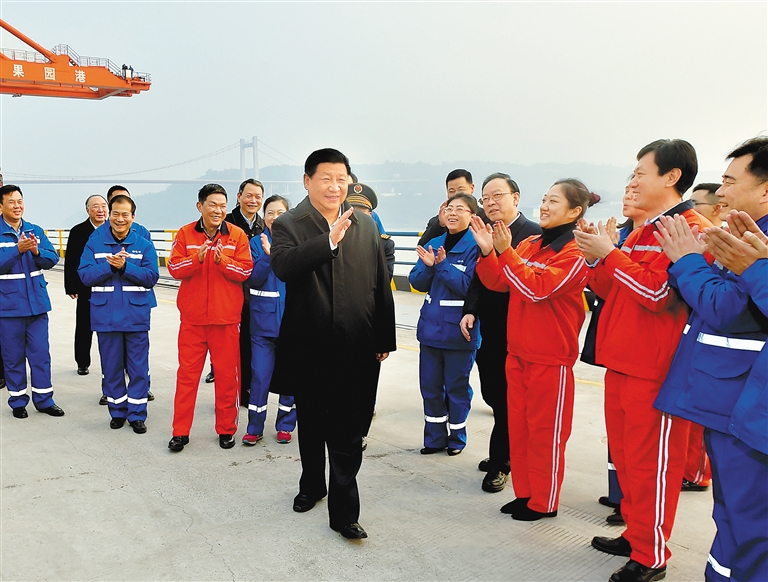 冬日的山城,寒气中和着丝丝暖意。1月4日至6日,习近平在中央政治局委员、重庆市委书记孙政才和市长黄奇帆陪同下,深入港口、企业考察调研,就贯彻落实党的十八届五中全会精神和中央经济工作会议精神进行指导。