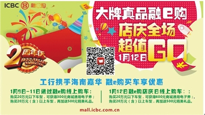 1月12日融e购店庆日线上购买20万元以下车型,可获得600元商城通用电子券;购买20万元(含)以上车型,再加送价值500元的礼品。