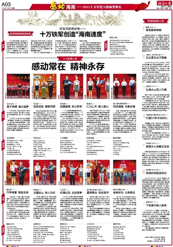 第003版:感动海南——2015十大年度人物颁奖典礼