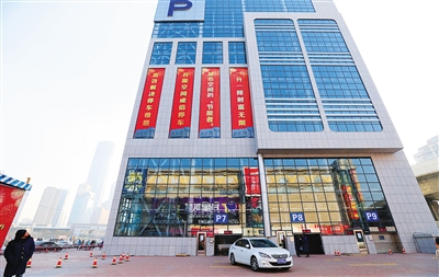 这是1月9日拍摄的大连火车站北广场公共立体停车场。 当日,位于大连火车站北广场的公共立体停车场投入试运营。该停车场是由单体车库组成的塔库群,每座为22层或23层,共有停车位606个。停车场正式投入运营后全部采用智能化管理,可自助完成存取车,并实现手机、刷卡支付停车费。 新华社发(朴峰 摄)