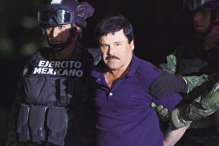 去年10月,墨西哥军警在锡那罗亚州山区险些抓获古斯曼。他跳下一座小山崖,摔伤腿后侥幸逃生。