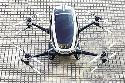 中国广州亿航智能技术有限公司6日在2016年拉斯韦加斯消费电子展(CES)开幕当天,发布全球第一款能搭载一名乘客且全天候飞行的大型无人机。其外观与直升机类似,但完全自动驾驶,无需飞行员。该公司称,希望这款无人机将来能成为人类中短途日常交通运输工具。