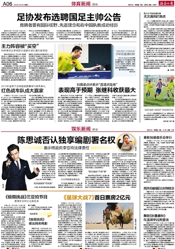 海南日报 体育新闻综合 006 2016-01-101 2016年01月10日 星期日