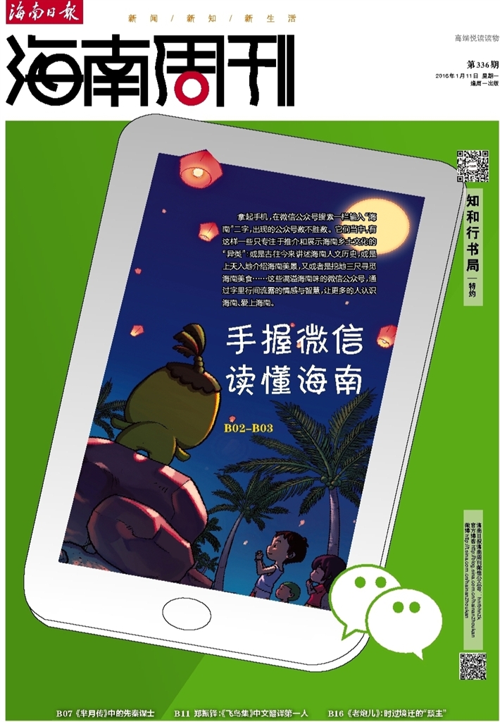 拿起手机,在微信公众号搜索一栏输入“海南”二字,出现的公众号数不胜数。它们当中,有这样一些只专注于推介和展示海南乡土文化的“异类”:或是古往今来讲述海南人文历史,或是上天入地介绍海南美景,又或者是挖地三尺寻觅海南美食……这些满溢海南味的微信公众号,通过字里行间流露的情感与智慧,让更多的人认识海南、爱上海南。