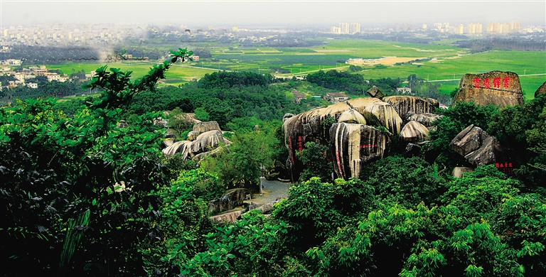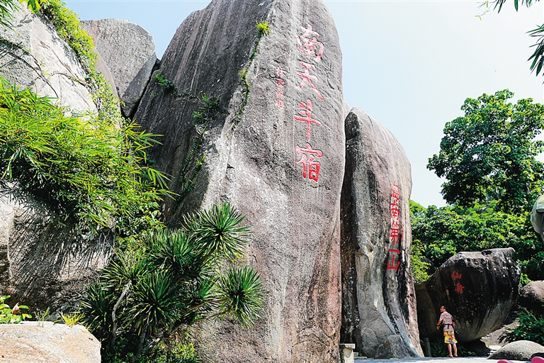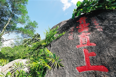 海拔184米,在海南的山中,东山岭不高,也显不出多少幽峻来。然而从古至今,论名气之大,推崇者之多,没有哪座山可与之媲美。早在晋朝,文人墨客就在此地留下笔墨石刻。到明代,万州牧曾光祖题写了“海南第一山”几个大字,由工匠镌刻在东山岭上。
