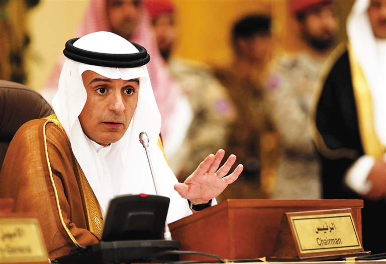 1月9日,在沙特阿拉伯首都利雅得,沙特外交大臣朱拜尔在海湾阿拉伯国家合作委员会(海合会)紧急外长会后出席记者会。 沙特阿拉伯外交大臣朱拜尔9日警告伊朗,如不停止其干涉他国内政的做法,沙特将采取更多反制措施。 新华社/路透