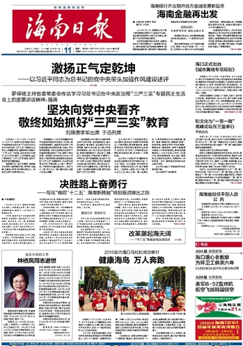 海南日报 头版 001 2016-01-111 2016年01月11日 星期一