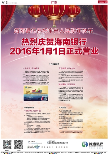 | 海南日报 广告 012 2016-01-111 2016年01月11日 星期一 |