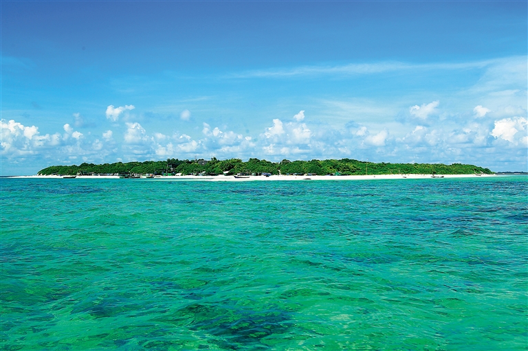 鹭鸟与浪花相随,在浩浩南海上的一艘艘冲锋舟上,我们劈浪前行,只为不错过这里任何一道风景。大浪打湿了身体,考验着我们与海竞速的意志,忽然,青蓝色的海面上一道绿光冲进了眼睛,那是绿洲小岛,我们张开了双臂……