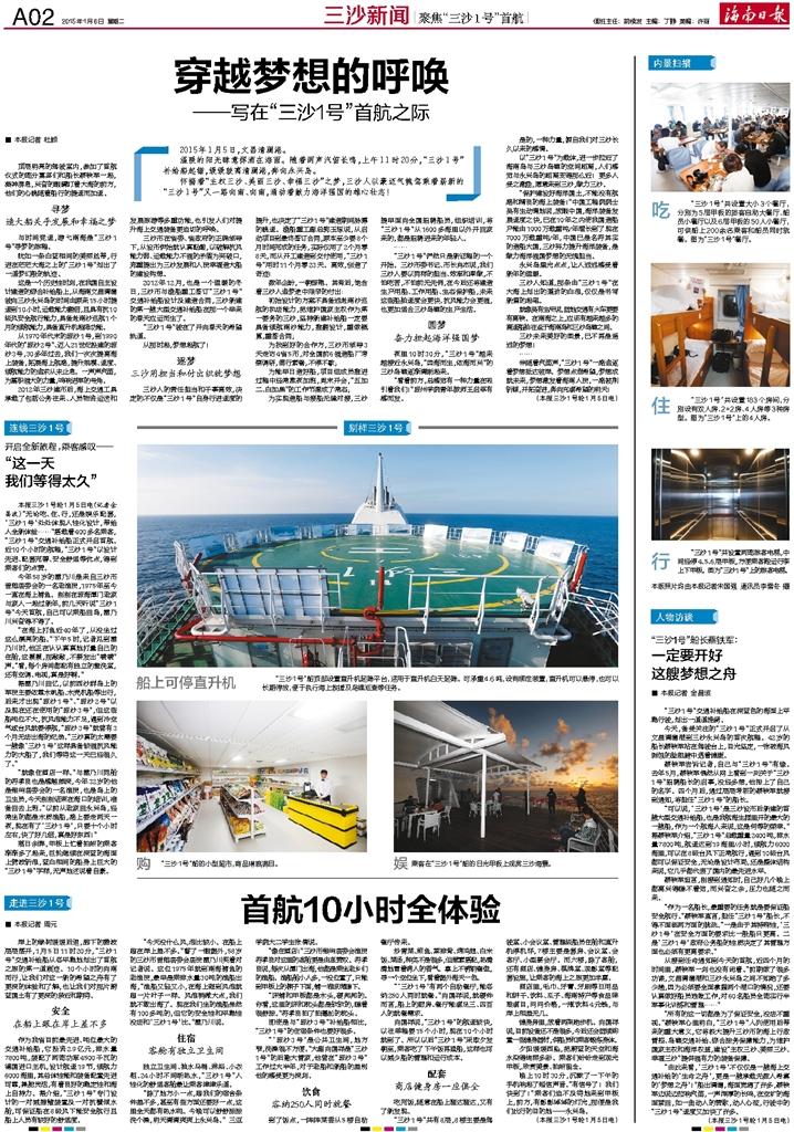 2015年新春佳节前夕,本报记者李佳飞第一次踏上三沙这片美丽而神奇的热土,她的这次三沙之行,恰好在2015年春节,因此此行有了别样的意味。