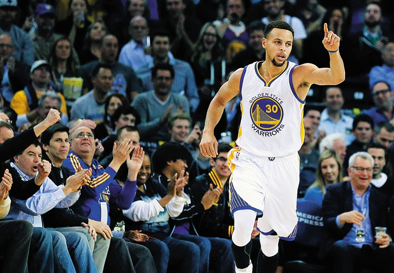在北京时间1月12日的NBA常规赛中,勇士队以111:103击败热火队,取得7连胜的同时,还将自己跨赛季的主场连胜场次提升到36场。图为库里在比赛中。新华社发
