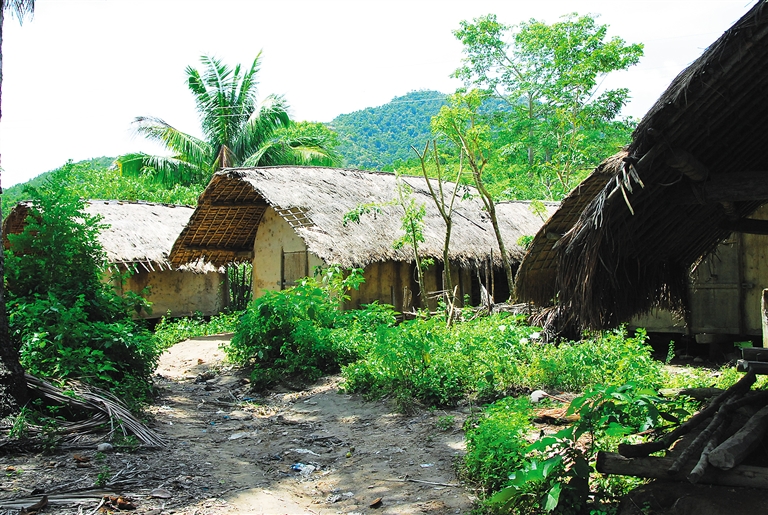 目前,东方的江边乡白查村、昌江的王下乡洪水村以及五指山市的初保村等少数村庄还保留着传统的黎族船型屋。群山环抱、椰林摇曳、槟榔婆娑,一栋栋低矮的茅草房像倒扣的木船。白查村的黎族船型屋记录着黎族的生存与发展轨迹,记录着黎族历史文化传承的脉络。