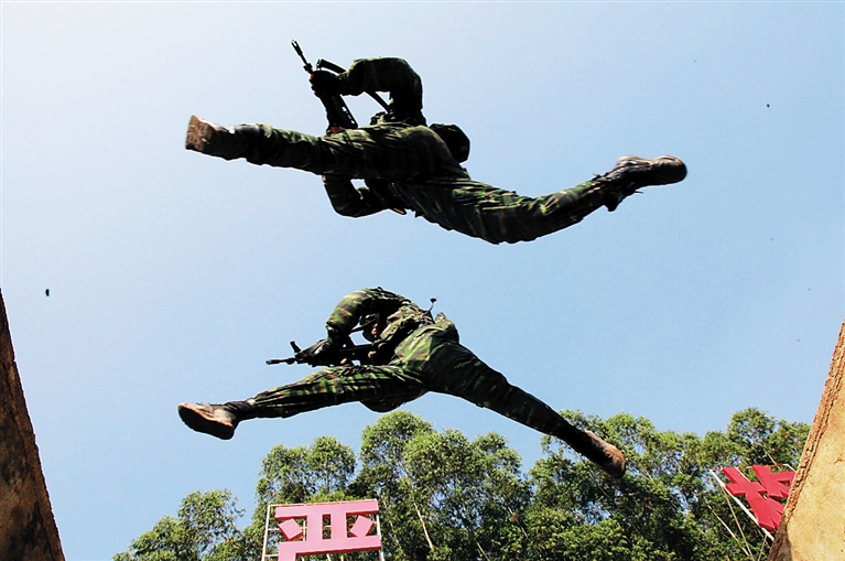 武警特战队员进行快速穿越障碍训练。 新年伊始,国防和军队改革深入展开,全军和武警部队聚焦强军备战,积极投身改革,以演兵场上真打实备的实际行动,奋力书写改革强军的合格答卷。新华社近日派出多路记者,分赴刚刚成立的陆军领导机构、火箭军、战略支援部队以及海军、空军和武警部队,全景式扫描陆、海、空、天、电多维空间里新年开训的火热场景。 新华社发