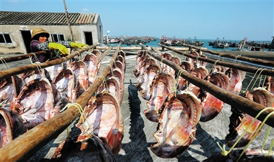 如今,大一点的渔船都有了大型制冷设备,渔民捕捞红鱼后立即冰冻起来,待靠岸后再解冻加工。因此,人们已经可以吃到比较新鲜的红鱼了,但红鱼干仍是大家的最爱。这不仅是一种怀旧的情结,更因红鱼醇厚的咸香。