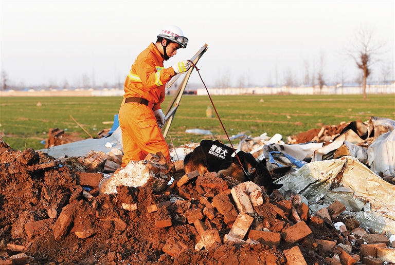 1月14日,消防人员在事故现场进行搜救工作。截至14日19时,河南省通许县发生的烟花爆炸事件已致10人死亡,另有7人在医院救治,其中5人重伤,2人轻伤。此外,通许县已经采取紧急措施,责任人被依法控制。新华社发