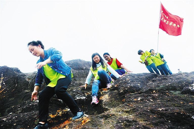 除了革命前辈的精神感召,队友的支持和鼓励也给了南海网主持人于刘青子很多力量。她认为,短短两天时间内,自己与队友之间有那么深的感情和默契,与前一天参加的团队活动分不开。正如于刘青子所说,为了培养新记者们的集体归属感和团队荣誉感,锻炼记者们的团队协作能力,主办方特意在登山前一天组织了多种类型的团队活动。