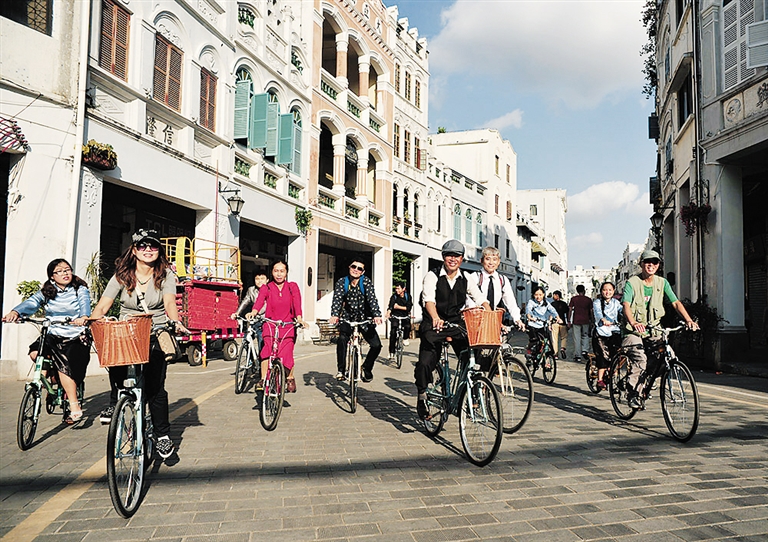 海南天涯骑驴俱乐部就有一群这样的人,他们享受在充满南洋韵味的海口骑楼老街上,身着民国风情的复古盛装,踏着各式各样复古型的自行车,流连徜徉,成为一道别具一格的风景,吸引着路人的目光。