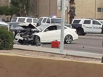 当地时间16日14时40分许,江玥驾驶一辆奔驰轿车,在亚利桑那州坦佩市繁忙的百老汇路与麦克林托克路十字路口等待红灯时,遭戴维斯所驾汽车追尾。