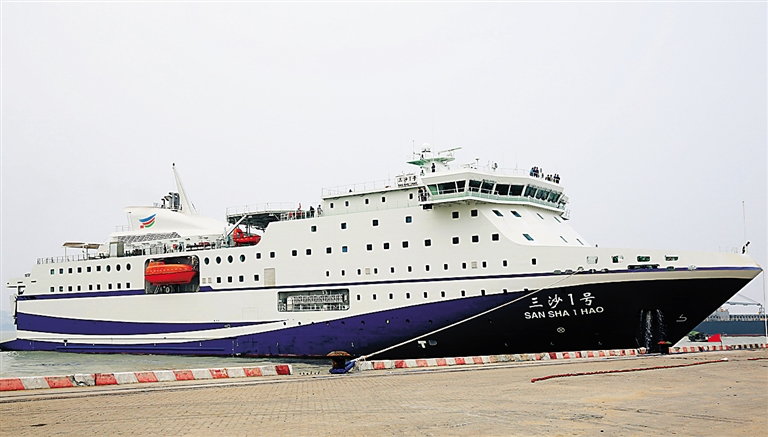 去年1月,7800吨“三沙1号”轮投入使用。它拥有456个舱位,装载20辆标准集装箱车,抗10级风力,单程从海南岛到永兴岛比“琼沙三号”缩短了5个小时。