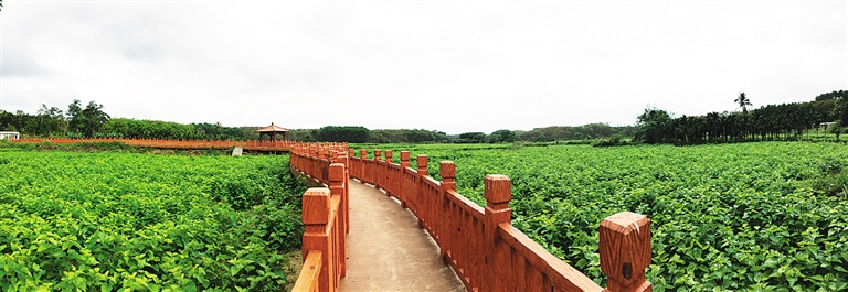 我为了要看一片桑田而来到岭脚村。从海山岛饭店北边最近的一个路口拐入,有一条蜿蜒的村道,穿过槟榔林,十分钟的车程就能抵达。