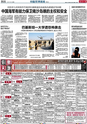 海南日报 中国/世界新闻综合 017 2016-01-211 2016年01月21日 星期四
