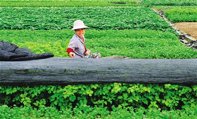 1月21日,海口市秀英区永庄村,菜农小周给来不及采摘的芹菜“穿上冬衣”。新盖上的黑纱布,可以起到类似大棚的防雨保温效果。持续低温降雨和即将到来的寒潮会严重影响蔬菜生产,海口市农业局及时组织专家到田间辅导菜农做好田间管理,力争将不良天气的影响降至最小。