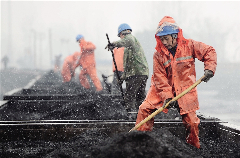 1月22日,江西省气象台发布暴雪黄色预警,江西将出现近年来最寒冷的天气。南昌铁路局九江车务段和上海国际港务集团九江分公司加强组织协调,对运煤列车和船舶重点盯控和装卸,开通电煤绿色通道,实行24小时不间断作业,保障电力供应。 新华社发(胡国林 摄)
