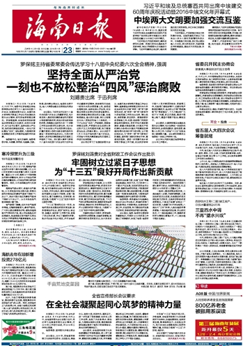 海南日报 头版 001 2016-01-231 2016年01月23日 星期六