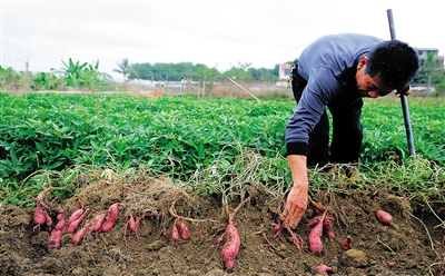 这里的妹仔薯每亩产量达4000斤,而种植成本只有800元左右,每亩妹仔薯可净赚6000多元。