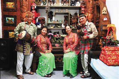 每逢节假日或是结婚典礼,出场表演的男演员头戴印尼国帽,身穿格子衣,手拿沙锤,女演员则是头插鲜花和金梭,身着小花裙子,光着脚板翩翩起舞,跳到热烈之处,他们还会上前拉起在一旁拍掌的观众跳起舞来……