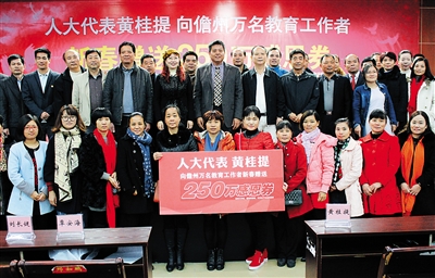 春节前专门赶到儋州作出尊师重教的善举,对黄桂提而言,并非一时心血来潮,而是一种常态化的坚持。据了解,从2011年以来,黄桂提及其公司连年为儋州教育事业捐款捐物,总价值近千万元。