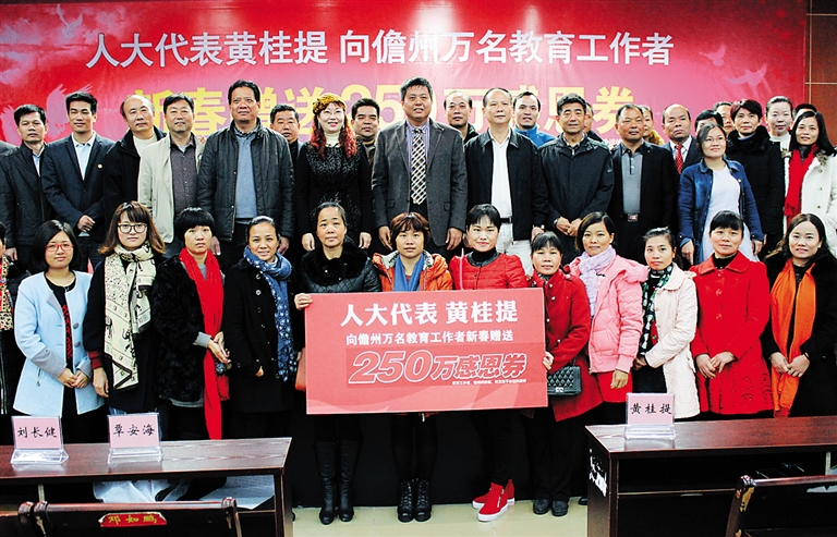 “回馈社会,最好的方式就是感恩教师,因为教师是最伟大的人!”黄桂提表示,支持儋州教育,就是支持儋州的未来。带着对儋州教育工作者的敬重,不顾严寒天气,黄桂提向他们拜年,此次带来了价值250万元的感恩券,即每人发放面值200元的消费券,可用于购买图书和生活消费。