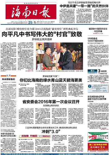 | 海南日报 头版 001 2016-01-251 2016年01月25日 星期一 |