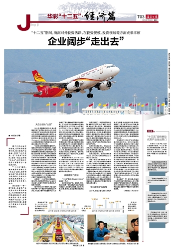 在海南,“十二五”期间,海航集团、海马汽车、海胶集团等我省大企业纷纷走出国门,在海外寻求更大发展空间,并取得丰硕成果。