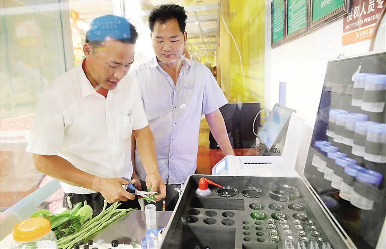 2015年7月底,省食药监局完成在全省75个大型超市和134个农贸市场设置果蔬农药残留免费检测点,为广大消费者提供免费农药残留检测服务。在此基础上,该局进一步指导各免费检测点的升级增效工作,至去年11月底,已将158个超市和农贸市场的卡式农药残留快检仪器更换为具有数据储存和上传功能、检测结果更为可靠的仪器。目前,我省已经形成责任明确、 覆盖全省的省级中心检测、 市县快速检测和乡镇(街道)免费检测的三级食品安全检验检测体系。