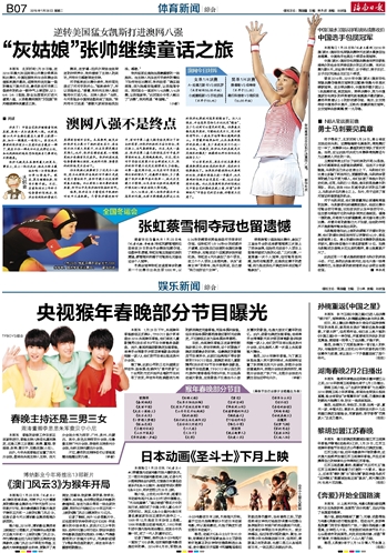 | 海南日报 体育新闻综合 019 2016-01-261 2016年01月26日 星期二 |