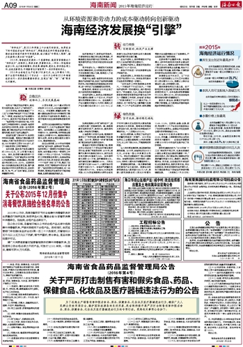| 海南日报 海南新闻2015年海南经济运行 009 2016-01-261 2016年01月26日 星期二 |