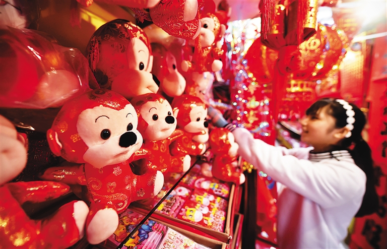 1月26日,市民在海口一家年货商店选购新年饰品。 春节将至,海口市的年货市场迎来大批前来采购的市民,浓浓年味弥漫椰城。 新华社记者 郭程 摄