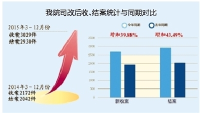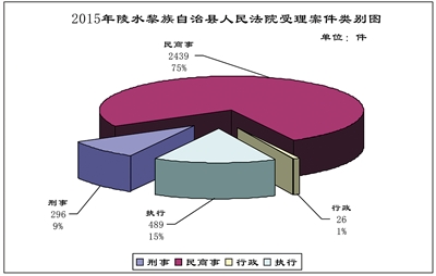 据统计,2015年,陵水法院受理案件数量持续增长,特别是实行立案登记制以后,案件数量创历史新高,全年共受理各类案件3250件,审执结3144件,结案率96.74%,同比增加2.27个百分点,案件标的金额高达3.92亿元。