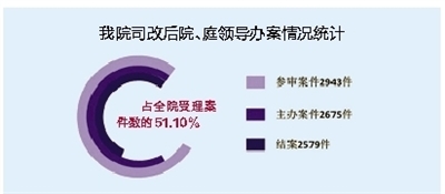 建立了院庭领导办案责任制。对院庭长的办案指标进行量化,纳入法官业绩考评,确保优质审判资源回归一线。自2015年3月至12月,院、庭领导主办案件1548件,占全院受理案件数的51.10%。