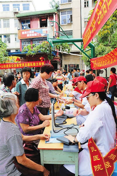 为了提高宿舍区家属参与“双创”的自觉性,继而推动“双创”工作的顺利开展,医院宿舍区也是医院“双创”工作的重点宣传区域。2015年10月,在医院宿舍区开展了为期一周的“双创”重点宣传活动。悬挂了12条横幅,张贴海报、宣传板共59张,发放宣传单300多份。将提前录制好的“双创”知识通过广播在宿舍区反复播放,形成了看、听、说三位一体的宣传模式。浓郁的宣传氛围激发了大家参与“双创”的热情,不少人主动找志愿者索取“双创”宣传单,小朋友们自信满满地互相背诵着“社会主义核心价值观”内容,一些年轻的父母也借此机会向孩子灌输着文明的理念,更有一些老年朋友向志愿者们交流着自己对“双创”的看法,并就如何构建良好的宿舍区环境提出自己的意见。大家都表示希望医院能以更多的活动形式将“双创”精神带进小区,让更多的人知晓“双创”,参与“双创”。