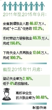 回眸“十二五”,这是民生改善的5年:就业等领域一系列改善民生的举措,提升了人民生活品质。“十二五”期间,全省新增就业人数46.87万人,完成“十二五”任务的117.2%。