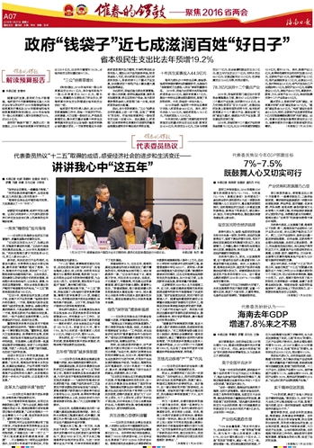 | 海南日报 催春的锣鼓——聚焦2016省两会 007 2016-01-271 2016年01月27日 星期三 |