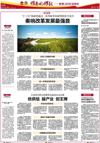 | 海南日报 催春的锣鼓——聚焦2016省两会 009 2016-01-271 2016年01月27日 星期三 |