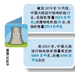 白皮书说,按照中国核电中长期发展规划目标,到2020年,中国大陆运行核电装机容量将达到5800万千瓦,在建3000万千瓦左右。到2030年,力争形成能够体现世界核电发展方向的科技研发体系和配套工业体系,核电技术装备在国际市场占据相当份额,全面实现建设核电强国目标。